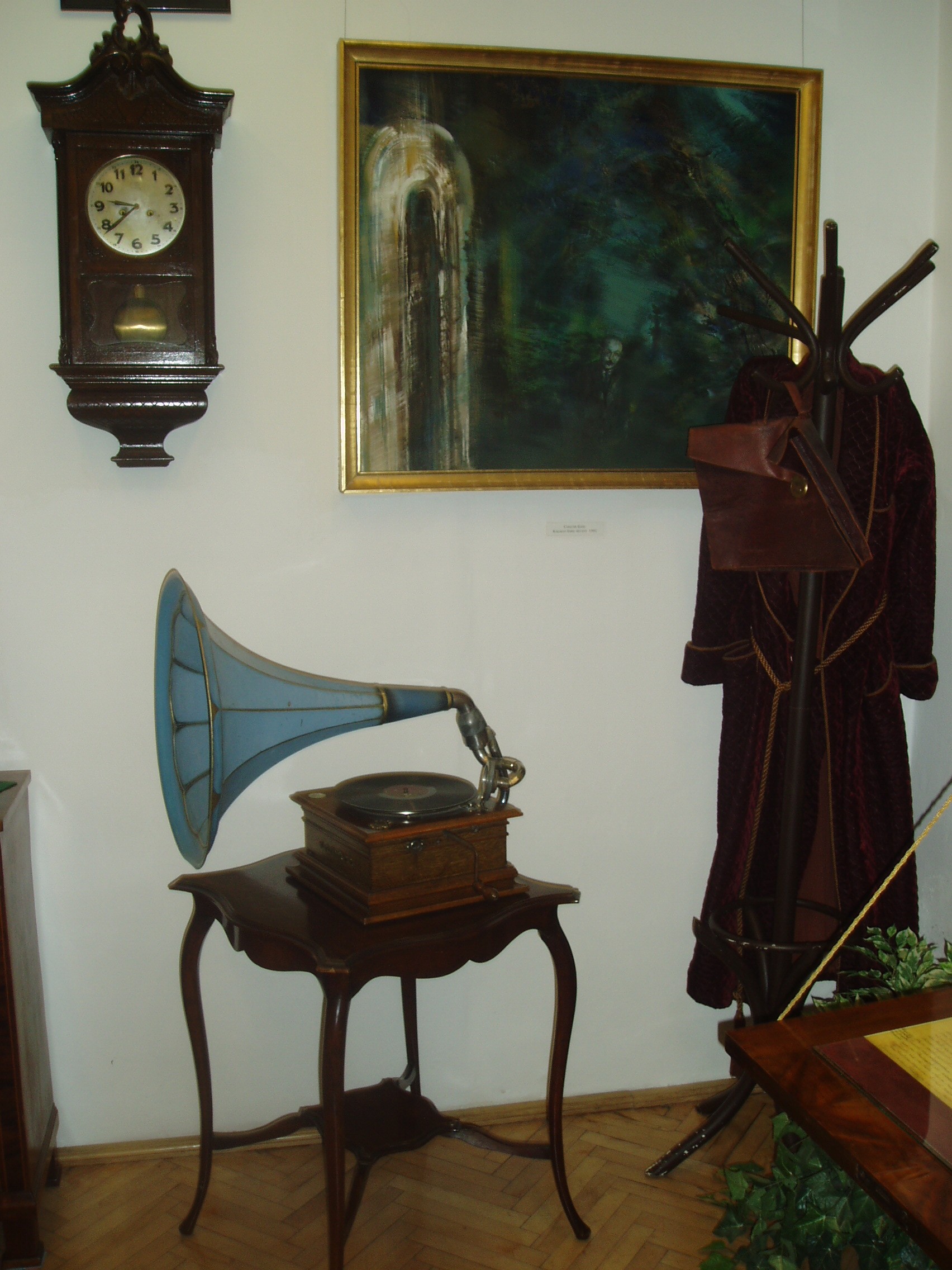 Nyilvános 1204 | 2159 | Siófok, Kálmán Imre sétány 5. | Ebben a vasútállomáshoz közeli házban született 1882-ben a magyar operett egyik legjelentősebb zeneszerzője, Kálmán Imre. Szülőházában — amelyet először 1955-ben jelöltek meg emléktáblával — 1970-ben özvegye, Kálmán Vera jelenlétében emlékszobát avattak. A mostani, gazdagabb anyagú emlékmúzeumot a zeneszerző születésének 105. évfordulója alkalmából, 1987. október 22-én nyitották meg. Jelenleg az emlékmúzeum a szülőház földszinti termeiben található, az emeleten kortárs képzőművészeti időszaki kiállításokat szoktak rendezni. Kálmán Imre számos személyes tárgyát állították itt ki enteriőr-szerűen, köztük bordó háziköntösét és kedves "daloló gép"-ét, amely mellett gyakran hallgatott zenét - talán éppen ebben a köntösben. A fénykép 2006 júliusában készült. Felh. irod.: Kálmán Imre Múzeum Siófok. Szerk. Koch József. Siófok, 2000 http://www.kalmanimre-muzeum.hu/ |