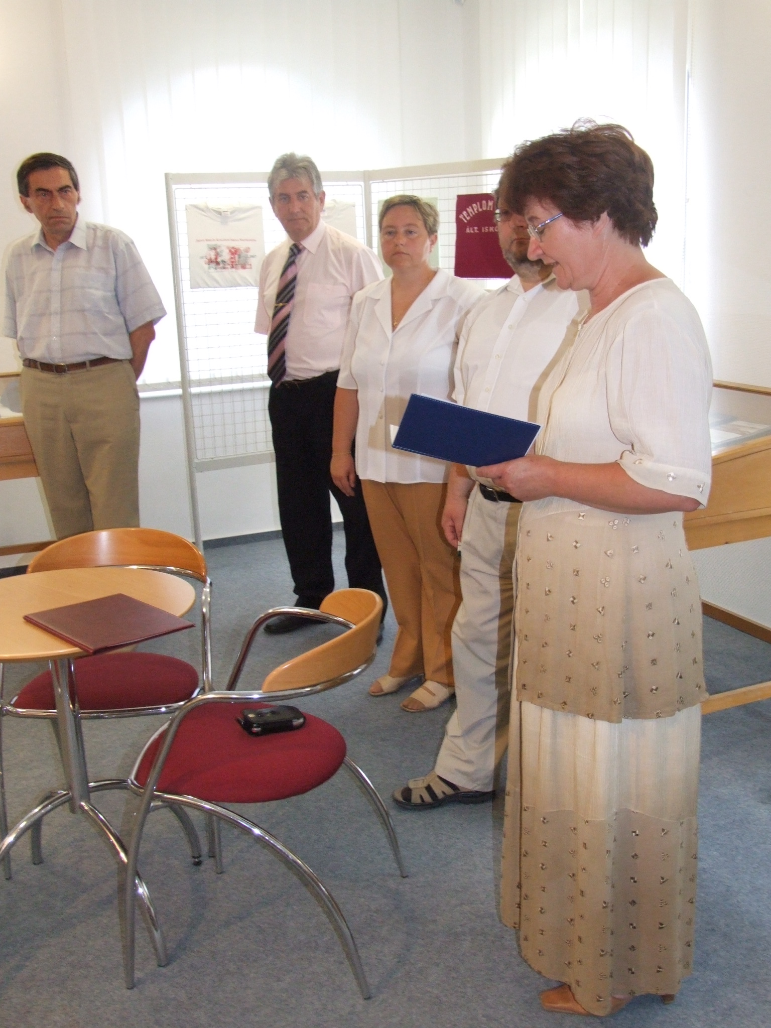 Nyilvános 1166 | 1745 | Balról jobbra: | Tarnóczky Attila, a kiállítás szervezője, Horváth István versmondó, Száraz Csilla, a Thúry György Múzeum igazgatója, Czupi Gyula, a Halis István Városi Könyvtár igazgatója, Szmodics Józsefné, Nagykanizsa M.J.V. Önkormányzatának Művelődési és Sportosztály vezetője |