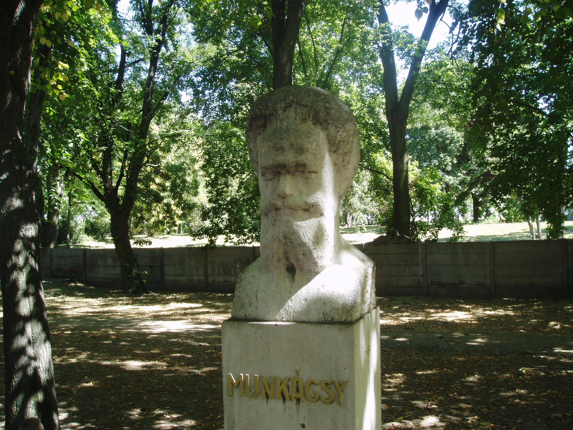 Nyilvános 1331 | 3048 | Gyula, Groza park, Szoborsétány: Munkácsy Mihály mellszobra | A Groza parkban, a vár felé vezető sétány mentén gyulai kötődésű neves személyiségek szobrait helyezték el. Munkácsy Mihály fehér mészkőből készült mellszobra Vasas Mihály alkotása. Munkácsy gyulai kapcsolatairól lásd: Gyula, Munkácsy utca 15. A fénykép 2007 júliusában készült. Felh. irod.: Czeglédy Imre: Gyula útikalauz. 2. jav., bőv. kiad. Gyula, 1995 |