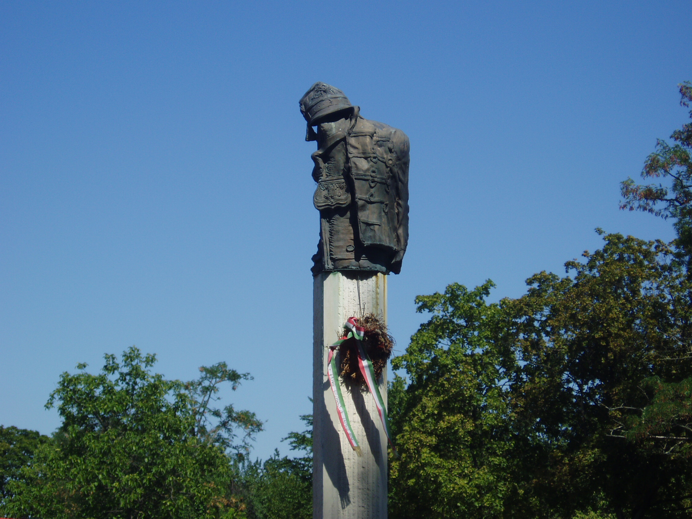 Nyilvános 1025 | 1610 | Gyula, Várkert: Honvédtiszti emlékhely | A szabadságharc végén, 1849 augusztusában szomorú esemény színhelye lett Gyula. A világosi fegyverletételkor a magyar sereg tisztjei megtarthatták oldalfegyvereiket, s az oroszok Sarkadra, majd Gyulára kísérték őket. Az oroszok tüntetően jól bántak a magyar tisztekkel: eltávolították a grófi kastély elől az osztrák őröket, s együtt mentek a Korona vendéglőbe, ahol a cigánnyal a Rákóczi indulót és a Kossuth-nótát huzatták, senki nem gondolt arra, hogy a foglyok valaha is az osztrákok kezébe kerülnek. A mostani Groza park területén elhelyezett fogolytábort alig őrizték, többen polgári ruhát szerezve el is menekültek. A hagyomány szerint az araddi tizenhárom vértanú közül kilenc volt Gyulán: Aulich Lajos, Damjanich János, Kiss Ernő, Knezich Károly, Lahner György, Lázár Vilmos, Leiningen-Westenburg Károly, Nagy-Sándor József, Török Ignác. A tábornokokat magánházaknál szállásolták el, amelyeken ma emléktábláik olvashatók. Közülük csupán Lahner és Damjanich volt köteles a várkapu melletti cellában tölteni az éjszakát. Augusztus 21-én Rüdiger tábornok hozta Paszkievics parancsát, hogy a honvédtiszteket le kell fegyverezni és át kell adni az osztrákoknak. Augusztus 23-án a vár és a kastély közötti téren megkezdődött az 1300 honvédtiszt lefegyverzése. Másnap az oroszok átadták őket az osztrákoknak, akik 200 szekérrel szállították őket Aradra. E szomorú történelmi esemény 140. évfordulója alkalmából alakították ki 1989-ben a vár északi fala mögött az emlékhelyet, Máté István szobrász és Szemerei Márta építész alkotását. A posztamensen álló kilenc szobor az 1849. október 6-án kivégzett kilenc tábornokot szimbolizálja. A fénykép 2007 júliusában készült. Felh. irod.: Czeglédi Imre: Gyula útikalauz. 2. jav., bőv. kiad. Gyula, 1995 |