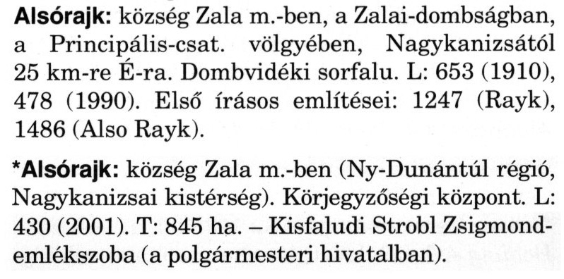 Nyilvános 2122 | 6552 | A szócikkek felismertetett szövege: | (A csillag után a kiegészítő kötetből származó szöveg következik) Alsórajk: község Zala m.-ben, a Zalai-dombságban, a Principális-csat. völgyében, Nagykanizsától 25 km-re É-ra. Dombvidéki sorfalu. L: 653 (1910), 478 (1990). Első írásos említései: 1247 (Rayk), 1486 (Also Rayk). * Alsórajk: község Zala m.-ben (Ny-Dunántúl régió, Nagykanizsai kistérség). Körjegyzőségi központ. L: 430 (2001). T: 845 ha. - Kisfaludi Strobl Zsigmondemlékszoba (a polgármesteri hivatalban). A szócikkek a következő lexikonból származnak: Cím: Magyar nagylexikon Közreműködő: Élesztős László (1949) (szerk.) ; Barabás Éva (1943) (szerk.) ; Berényi Gábor (1946) (szerk.) ; Bárány Lászlóné (szerk.) ; Adelmann-né Kertész Judit (1945) (közrem.) ; Froemel Károlyné Jáky Éva (1936) (közrem.) ; Akadémiai Kiadó és Nyomda Vállala Szerz. közl.: [... Élesztős László főszerk.] ; [szerk. Barabás Éva et al.] ; [bibliogr. Adelmanné Kertész Judit] ; [kész. az Akadémiai Kiadó Magyar Nagylexikon Szerkesztőségében] Kiadás: Budapest : Akad. K., 1993- Kötetei: 1. köt., A - Anc 2. köt., And - Bag 3. köt., Bah - Bij 4. köt., Bik - Bz 5. köt., C - Csem 6. köt., Csen - Ec 7. köt., Ed - Fe 8. köt., Ff - Gyep 9. köt., Gyer - Iq 10. köt., Ir - Kip 11. köt., Kir - Lem 12. köt., Len - Mep 13. köt., Mer - Nyk 14. köt., Nyl - Pom 15. köt., Pon - Sek 16. köt., Sel - Szö 17. köt., Szp - Ung 18. köt., Unh - Z 19. köt., Kiegészítő kötet, A - Z ETO jelzet: 030=945.11 Szakjelzet: 030 Cutter: M 14 ISBN: 963-05-6611-7 [!ISBN 963-05-6615-X] Nyelv: magyar Megjegyzés: Az 5. kötettől kiad. a Magyar Nagylexikon Kiadó ; A 6. kötettől főszerk. Berényi Gábor ; A 6. kötettől szakszerk. Bárány Lászlóné et al. ; A 6. kötettől bibliogr. Froemel Károlyné ; Bibliogr. a szócikkek végén |