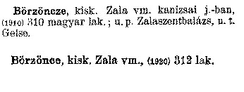 Börzöncze,kisk. Zala vm. kanizsai j.-ban, (1910) 310 magy ...
