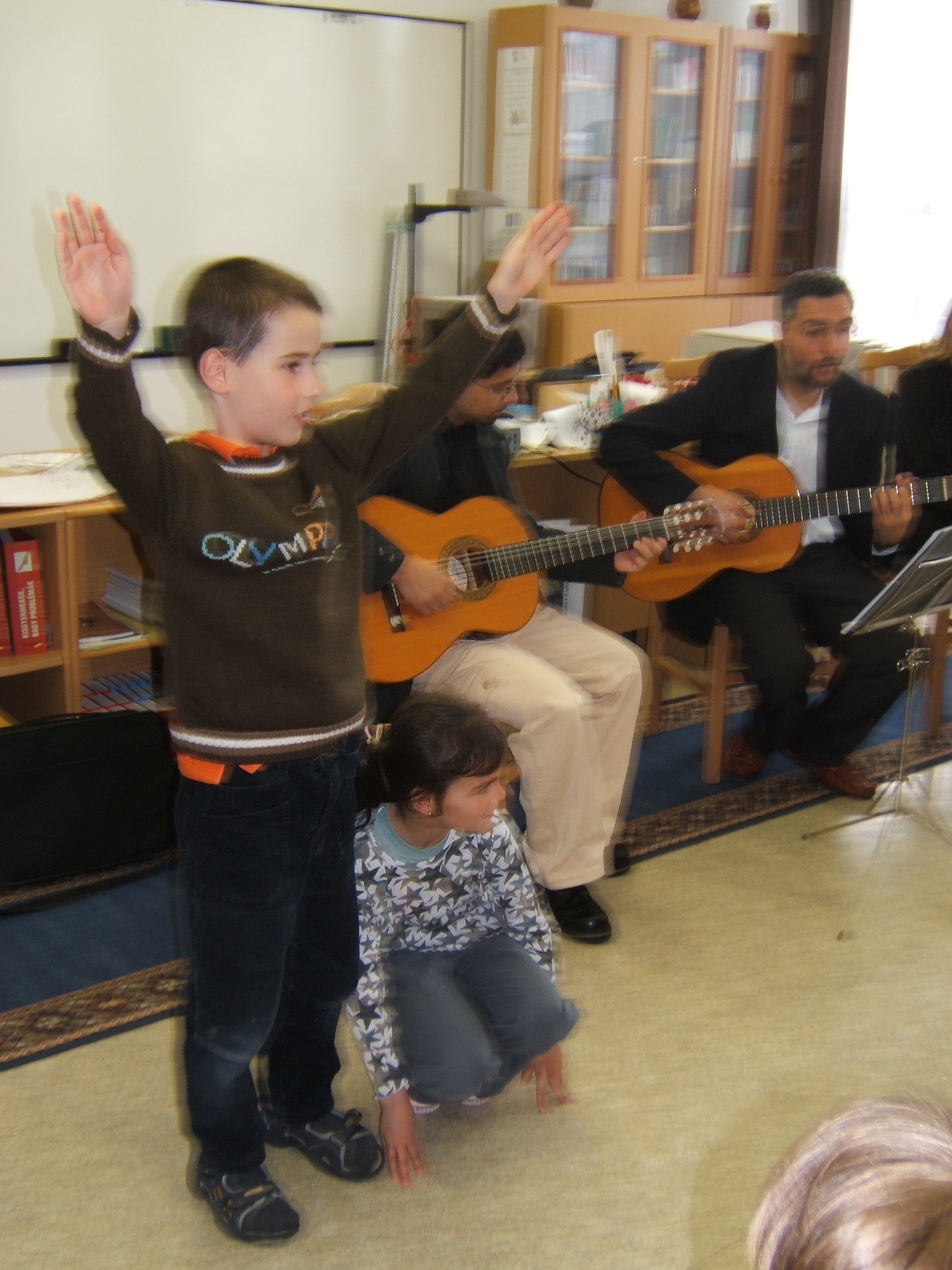 Nyilvános 1439 | 3261 | Költészet napja műsor a zalakarosi könyvtárban 2006. április 11-én. Vendégünk volt a Kardos Banda együttes, aki a kisiskolásoknak és a nagyoknak külön összeálított \"Költészet - minden formában régiektől, maiaktól\" című műsorát adta elő. | |