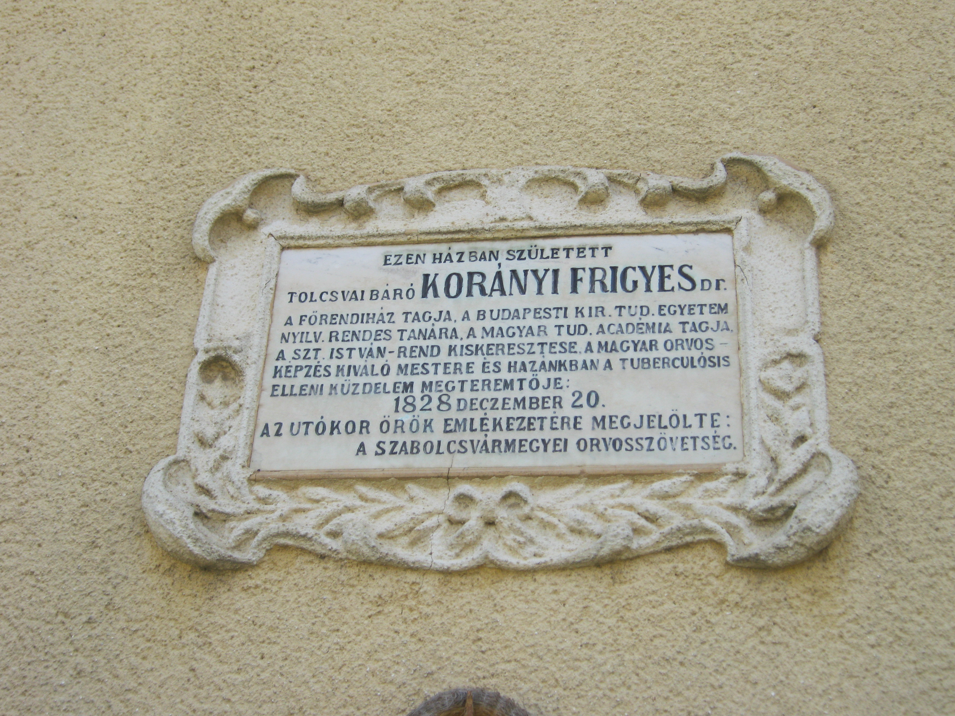 Nyilvános 995 | 1422 | Nagykálló, Szabadság tér 6. | Az 1700-as évek vége felé épült klasszicista eredetű épület Korányi Frigyes szülőháza. A magyar orvostörténet nagy alakja itt látta meg a napvilágot 1828. december 10-én. Édesapja, Kornfeld Sebald tehetős izraelita orvos volt. Korányi Frigyes 37 éves koráig Nagykállóban élt. Titkos vágya az írói pálya volt, édesapja példájára azonban orvos lett. 1848-ban apja kezdeményezésére vette fel a család a Korányi nevet s tért katolikus hitre. 1852-ben Nagykállóban kezdte meg praxisát, 1859-ben egyik alapítója volt a helyi kórháznak. Orvosi pályája a fővárosban teljesedett ki s írta be nevét az orvostörténet legnagyobbjai közé. Szülőháza 1971 óta emlékházként működik eredeti bútorokkal, relikviákkal. Felh. irod.: Harsányi Gézáné: Kálló kincsei. Nagykálló, 2007 |