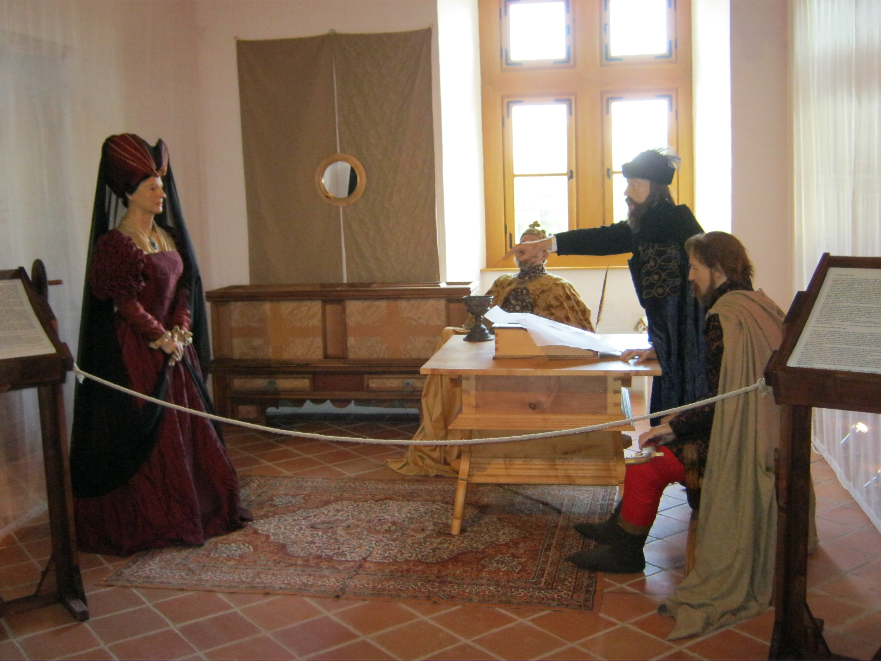Nyilvános 1052 | 1843 | Nyírbátor, Vár utca 1. Báthori várkastély | A Báthoriak várkastélyának többször átalakított egyetlen megmaradt épületét a közelmúltban állították helyre. Pincéjében reneszánsz étterem látogatható, földszintjén és emeletén a Báthori Panoptikum 45 élethű és korhű viaszfigurában mutatja be érzékletesen a jeles nemesi család és Nyírbátor történetét. A figurák tervezője és készítője Megyeri János szobrászművész. A megtekintést olvasható és hallgatható kalauzolás kíséri. A kiállítást a kenyérmezei csata 530. évfordulóján, 2009.október 13-án adták át. Az 1479-ben a törökkel vívott csata egyik hőse Báthori István volt. A kiállítás további része a XVI-XVII. századi főrangú hölgyek életét mutatja be, s kiemelten összpontosít a Nyírbátorban született híres-hírhedt Báthori Erzsébetre. Vitatható, hogy megelevenedik a látogató előtt a vérfürdő elképzelt jelenetsora, ugyanis a kutatások szerint ezzel Báthori Erzsébetet vagyonának megszerzése miatt és politikai okokból, igazságtalanul vádolták meg. Ügyében hivatalos tárgyalásra sem került sor, pedig a képen látható jelenet ezt sugallja. Felh. irod.: Látnivalók Szabolcs-Szatmár-Bereg megyében. Miskolc, Well-PRess, 1999 www.bathorivarkastely.hu A fénykép 2010 augusztus elején készült. |