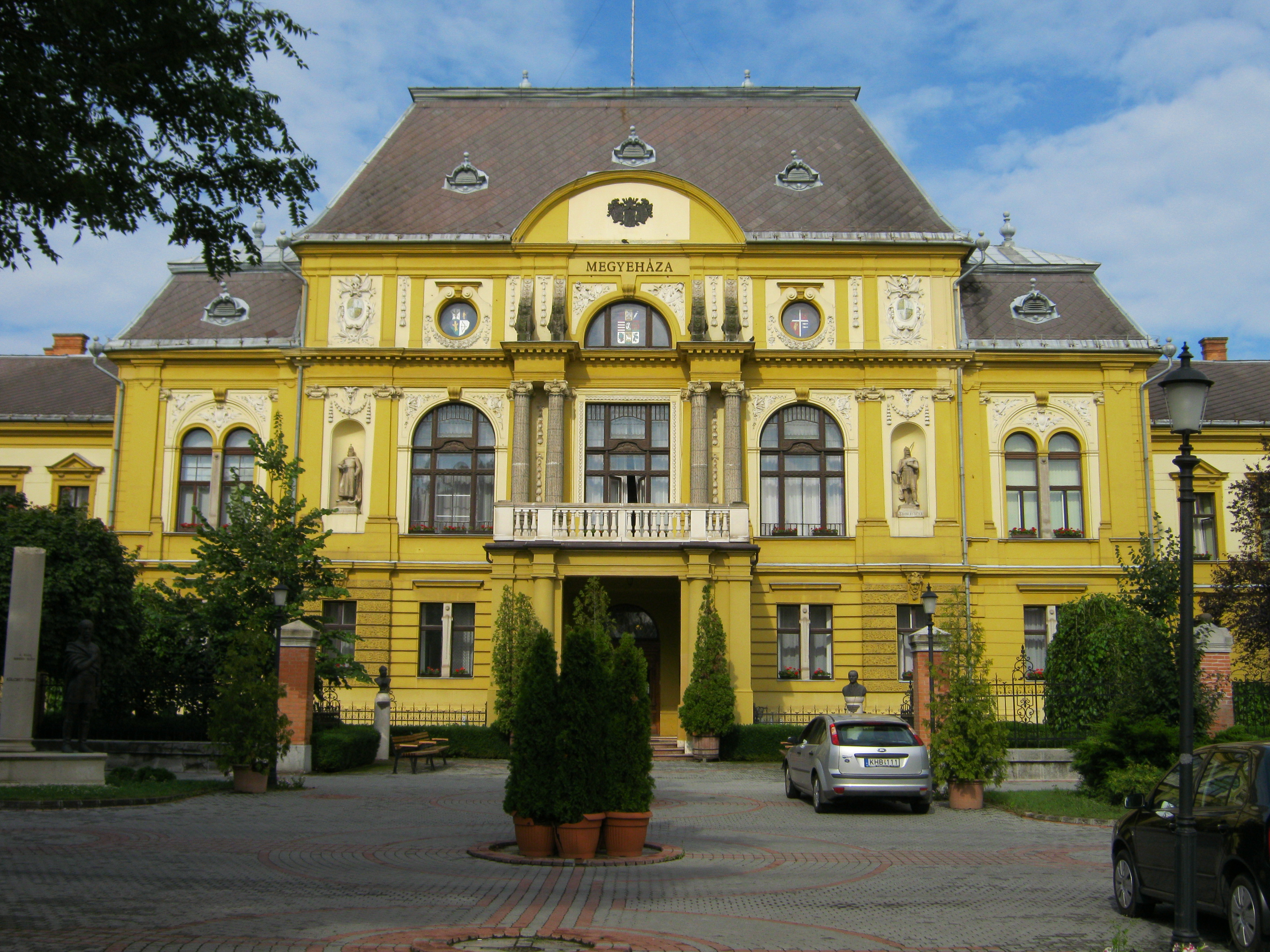 Nyilvános 1031 | 1498 | Nyíregyháza, Hősök tere 5. Megyeháza | Az eklektikus stílusú megyeháza 1891-1892-ben, Alpár Ignác tervei szerint épült. Homlokzatát Szabolcs vezér és az államalapító István király szobrai díszítik. Az épületplasztikák és díszítmények Verán József munkái. Nyíregyháza 1876-ban lett megyeszékhely, korábban Nagykálló töltötte be ezt a szerepet. A megyeháza épületében volt a még Nagykállón megalapított megyei múzeum első otthona. Dolgozott itt dr. Jósa András, az intézmény létrehozója, aki kitűnő orvosként régészettel is foglalkozott, őt az 1910-es évektől dr. Kiss Lajos néprajztudós váltotta fel. Felh. irod.: Látnivalók Szabolcs-Szatmár-Bereg megyében. Miskolc, Well-PRess, 1999 Margócsy József: Utcák terek emléktáblák 3. Nyíregyháza, Városi Tanács, 1989 A fénykép 2010 augusztus elején készült. |