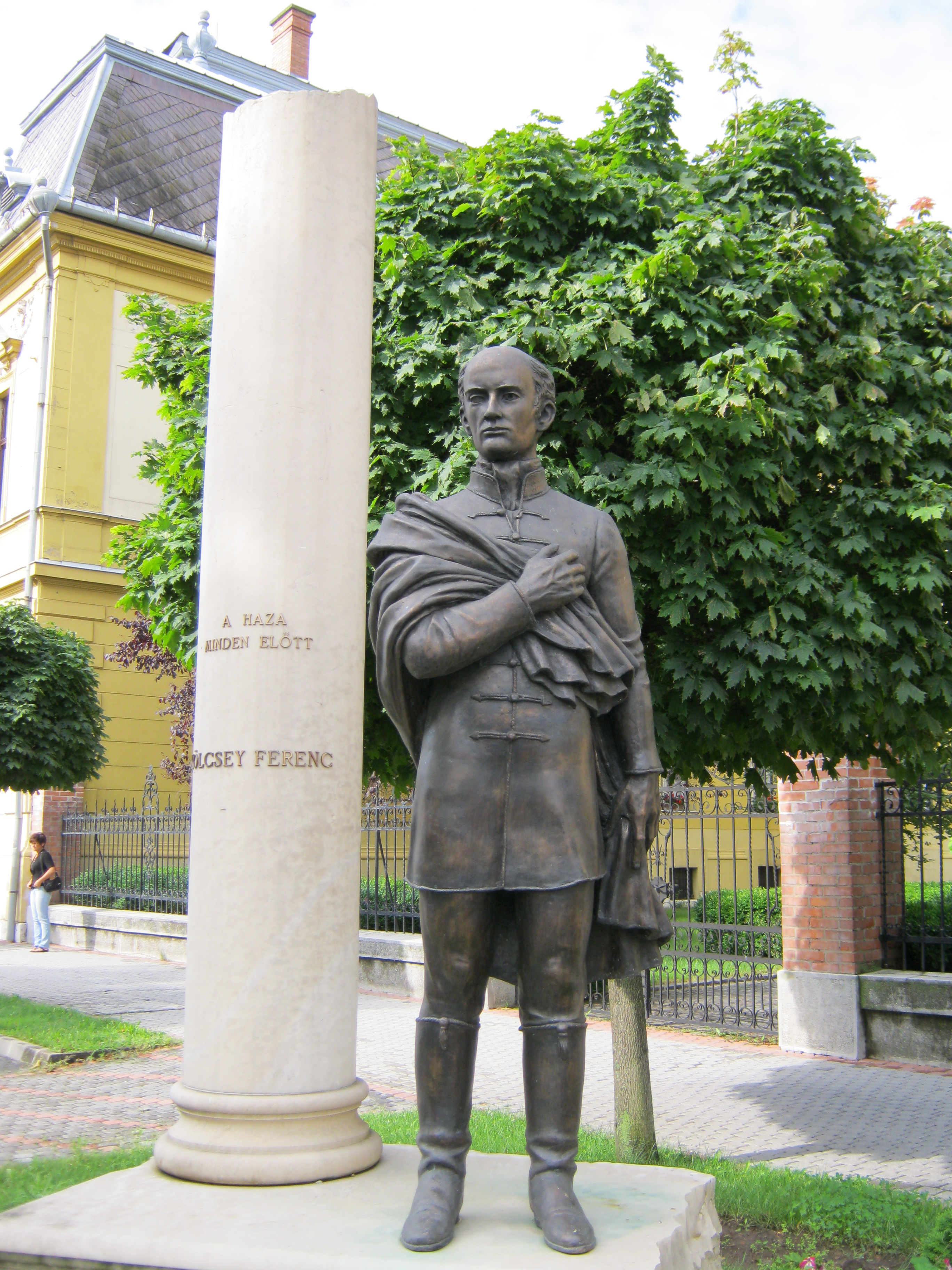 Nyilvános 1080 | 1499 | Nyíregyháza, Hősök tere 5. Megyeháza | Az eklektikus stílusú megyeháza 1891-1892-ben, Alpár Ignác tervei szerint épült. Homlokzatát Szabolcs vezér és az államalapító István király szobrai díszítik. Az épületplasztikák és díszítmények Verán József munkái. Nyíregyháza 1876-ban lett megyeszékhely, korábban Nagykálló töltötte be ezt a szerepet. Az épület előtt 2008-ban állították fel Bíró Lajos Kölcsey Ferencet megjelenítő szoborkompozícióját. A költőt szívre tett kézzel ábrázoló köztéri alkotást a Himnusz születésének 185. és Kölcsey halálának 170. évfordulójára emlékezve emelték. Az oszlop felirata: A haza minden előtt. Kölcsey Szatmár vármegye főjegyzője és országgyűlési követe volt. Szabadelvű politikusként a nemzeti függetlenségért, a polgári és emberi jogokért, a jobbágyfelszabadításért, a nemzeti egységért, a vallási egyenjogúságért és türelemért, a magyar nyelv hivatalossá tételéért dolgozott. Tiltakozásul a vármegye felszólítására, hogy az örökváltság ellen szavazzon, képes volt lemondani politikai karrierjéről. Felh. irod.: Látnivalók Szabolcs-Szatmár-Bereg megyében. Miskolc, Well-PRess, 1999 www.szoborlap.hu A fénykép 2010 augusztus elején készült. |
