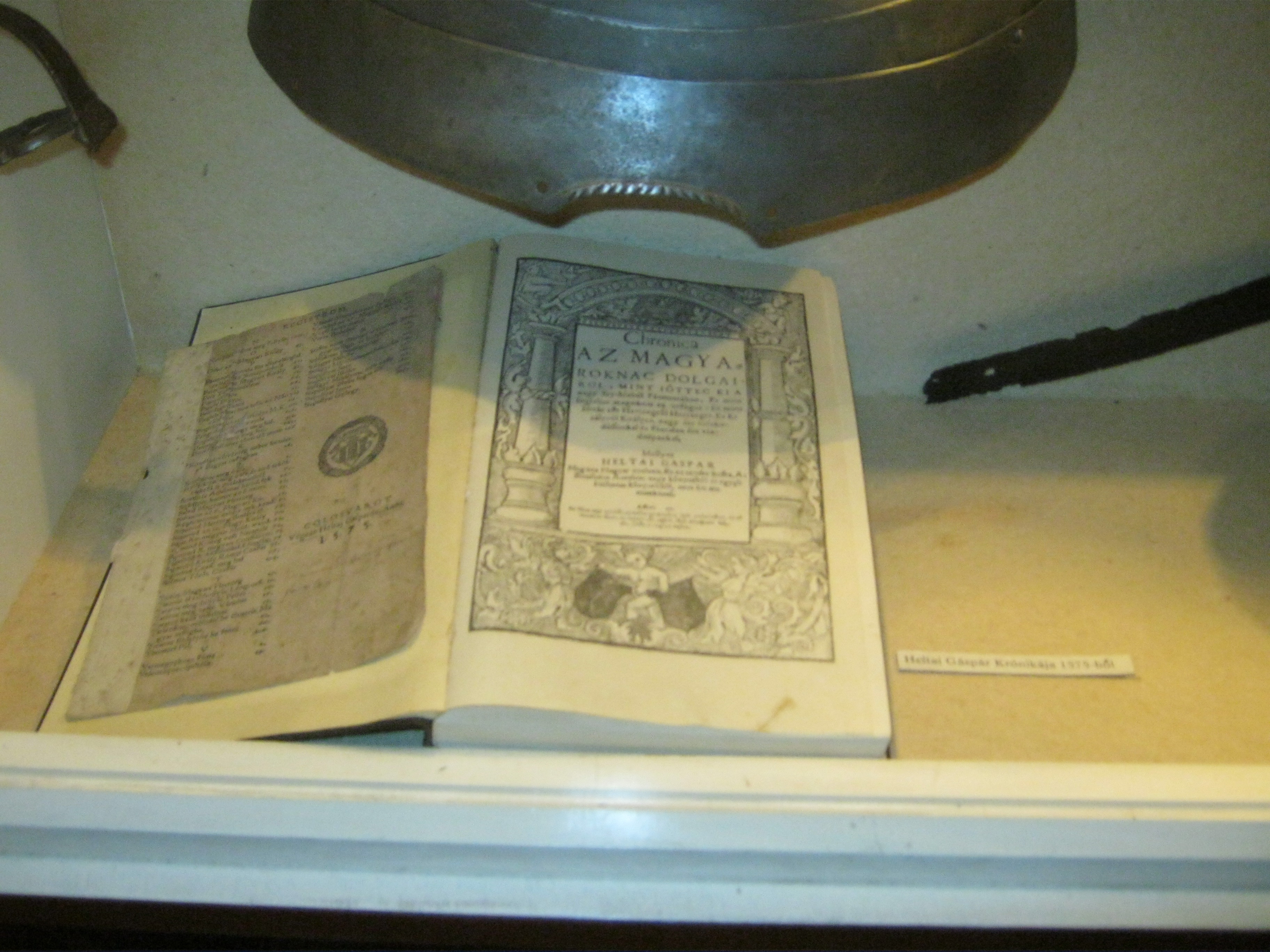 Nyilvános 1022 | 1367 | Nyírbátor, Károlyi utca 21. Báthori István Múzeum | A minorita kolostor épültét 1959-ben kapta meg a múzeum. Első igazgatója, Szalontai Barnabás áldozatos munkája nyomán két év múlva már meg is nyílhatott benne az első kiállítás. A képen Heltai Gáspár (1490 k.-1574) híres könyve, a Krónika a magyaroknak dolgairól. Felh. irod.: Látnivalók Szabolcs-Szatmár-Bereg megyében. Miskolc, Well-PRess, 1999 www.nyirbim.hu |