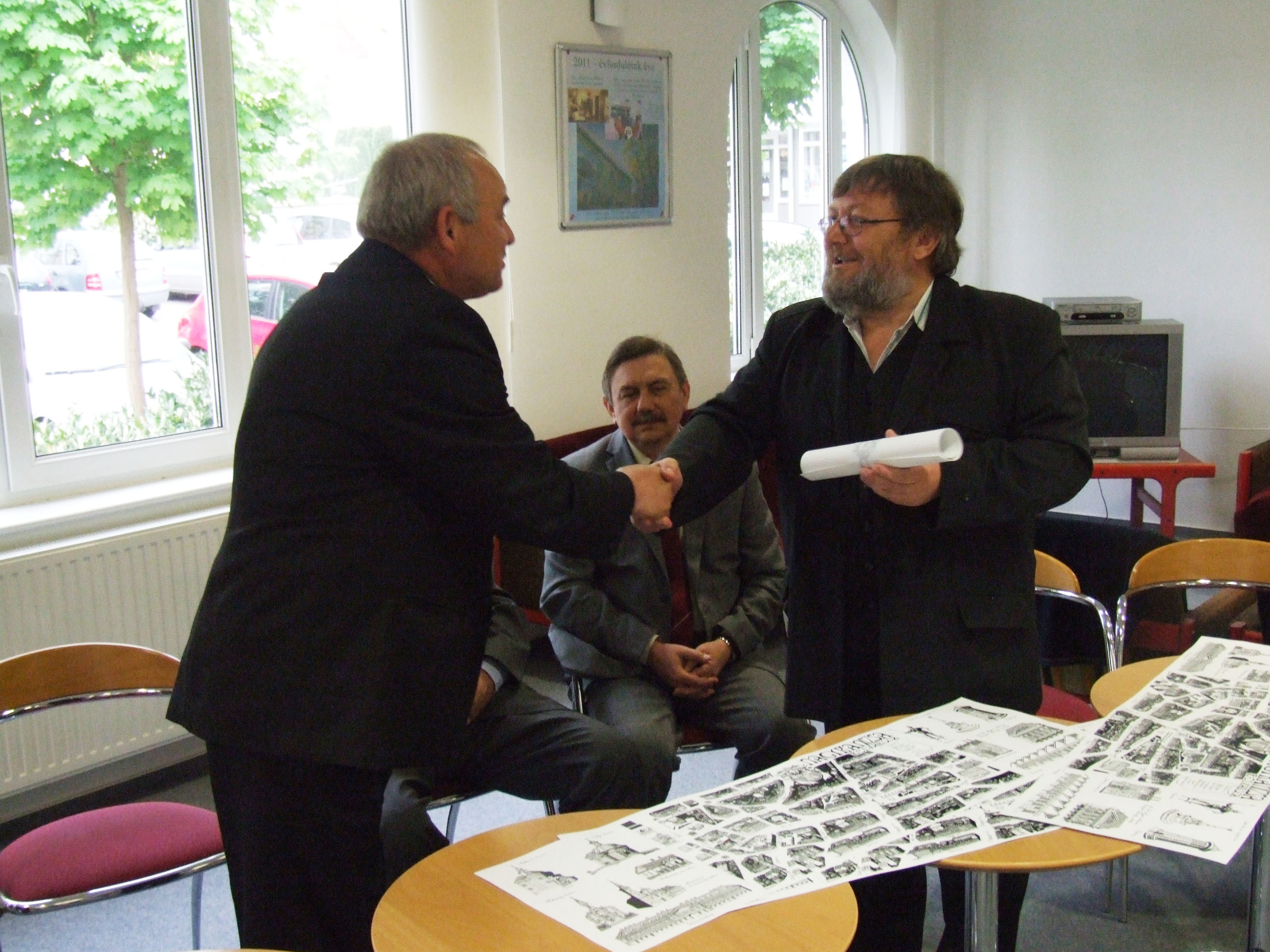 Nyilvános 1346 | 2607 | Nagykanizsa belvárosa – madártávlati kép | 2009 ősze óta folyt az munka, melynek eredményeként elkészült Nagykanizsa belvárosa madártávlati képe, Somogyi Győző alkotása. Bemutatására 2011. április 26-án, kedden 10,30-kor került sor a Halis István Városi Könyvtárban. Sokan támogatták a könyvtár és a Könyvtárpártoló Alapítvány törekvését – mondta el Czupi Gyula, a könyvtár igazgatója és az alapítvány képviselője. Az egész időszakban komoly segítséget jelentett a média képviselőinek támogatása, ezért az alkotást először az anyagi támogatóknak és a média képviselőinek mutatták be. A támogatók közül megjelent a Nagykanizsa Önkormányzatának képviseletében Dénes Sándor alpolgármester, a DKG-EAST képviseletében Szabó József, a nagykanizsai Városvédő Egyesület elnöke, Cserti Tibor, valamint a nagykanizsai Tourinform vezetője, Bali Vera. A magántámogatókat ezen a sajtótájékoztatón Tarnóczky Attila képviselte. A támogatók nem csak tanulmányozhatták az elkészült alkotást, hanem egy-egy példányt magukkal is vihettek ebből az alkalomból. Ugyancsak a kép egy-egy másolatával gazdagodva hagyták el a könyvtárat a média képviselői. A sajtótájékoztatón megjelenni nem tudó Kanizsa Plaza, a Sponzor Tours (Nagykanizsa), valamint a KKK Senior Kosárlabda Csapat később kapják meg a madártávlati képet, akárcsak azok, akik egyéni támogatásukkal segítették az alkotás létrejöttét. A könyvtár 60 éves születésnapjára készült művet nagyobb számban először a május 1-jei ünnepi program azon (300-nál több könyvet kölcsönző) meghívottjai kapják, akik emléklapot is vehetnek át ebből az alkalomból. Május 1-jétől a madártávlati kép meg is vásárolható a könyvtárban. Az érvényes könyvtári tagsággal rendelkezők kedvezményesen juthatnak hozzá. |