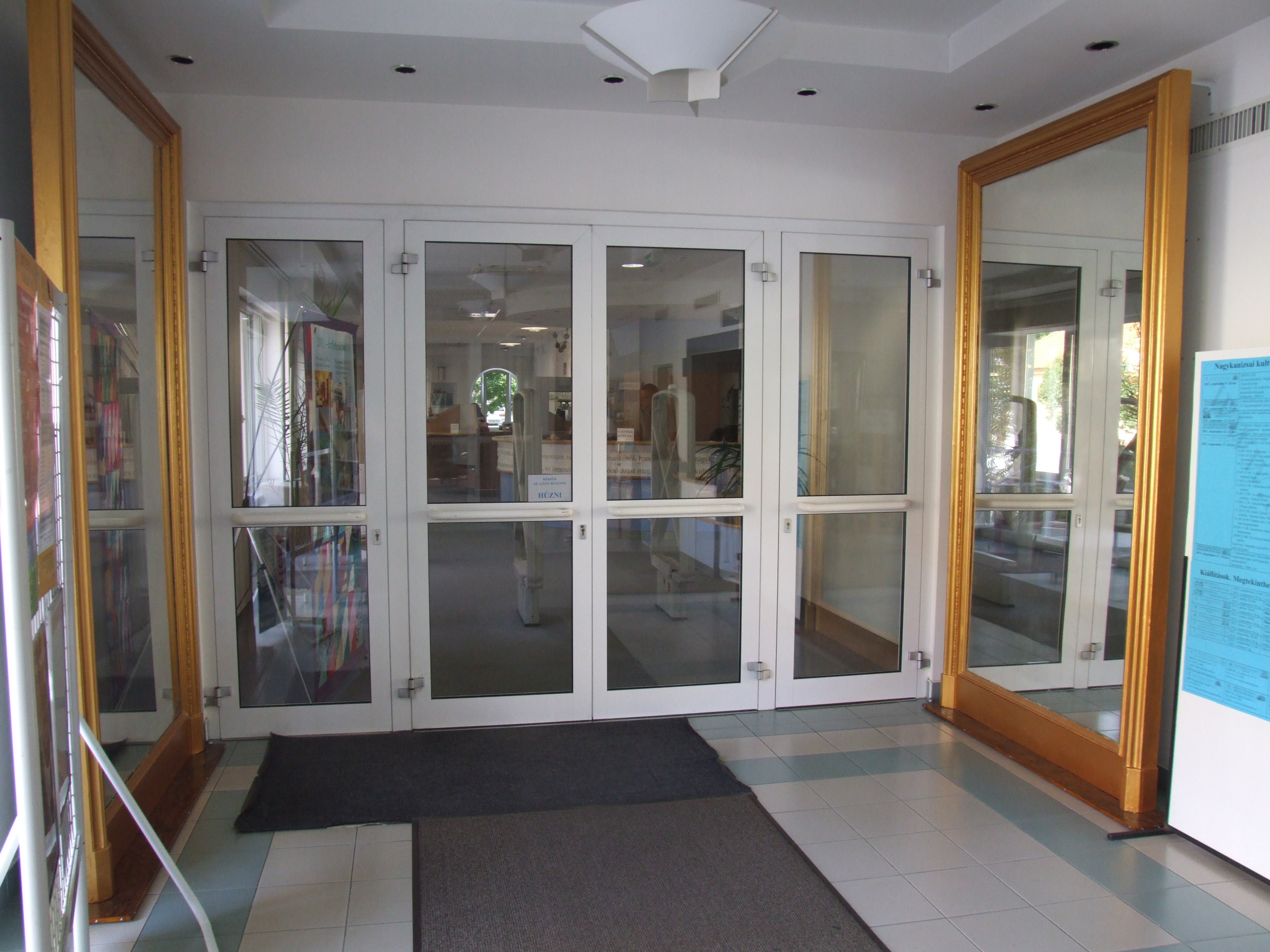 Nyilvános 1319 | 2652 | A 60 éves születésnapját ünneplő könyvtár a kezdetek (1950-es évek) után a Sugár út 3-ban töltött időszak bemutatására készül (1956-1988). A bemutató több eleme látható már az épületben, köztük az a két nagy méretű tükör is, mely a Sugár úti épület dísze volt. A tükrök a bejáratnál kerültek elhelyezésre Tarnóczky Attila felújító munkája után. (2011. szeptember 15.) | |