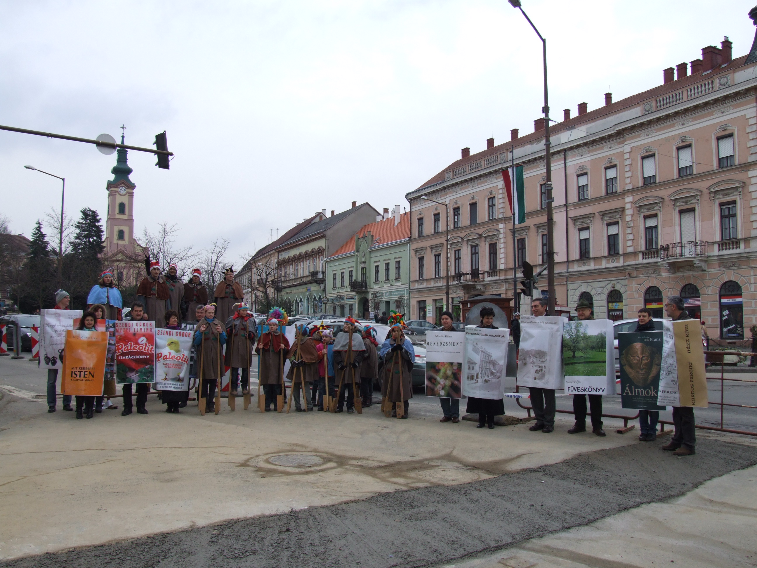 Nyilvános 1063 | 1529 | 2013. február 9. A farsangi fánkfesztiválra készülve felhívásban kértük olvasóinkat, hogy öltsék magukra kedves könyvüket. Egy „könyvespolcnyi” jelentkező vette magára kedves olvasmányát, az ő vonulásukról készültek ezek a képek. A környezetükben néhol láthatók a Nagykanizsai Gólyalábasok, akik szintén a könyvtárhoz kötődnek. A „felvonuló kötetek” a könyvtár épületében még megtekinthetők. | |
