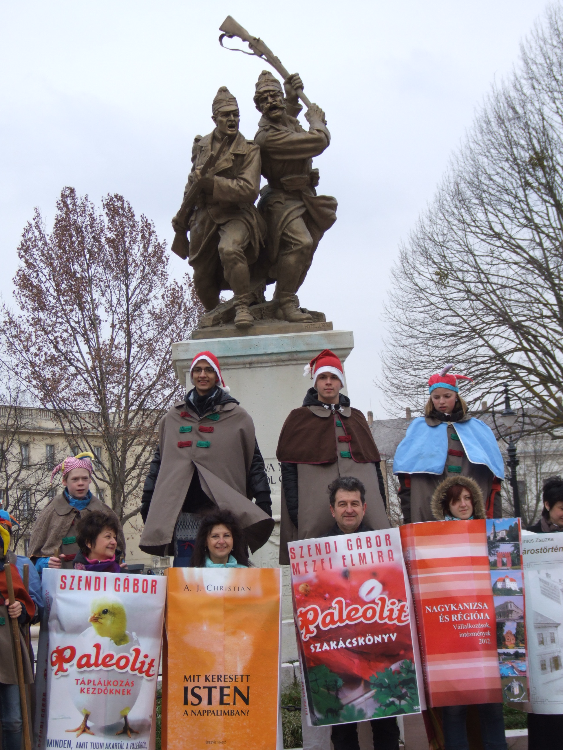 Nyilvános 1037 | 1455 | 2013. február 9. A farsangi fánkfesztiválra készülve felhívásban kértük olvasóinkat, hogy öltsék magukra kedves könyvüket. Egy „könyvespolcnyi” jelentkező vette magára kedves olvasmányát, az ő vonulásukról készültek ezek a képek. A környezetükben néhol láthatók a Nagykanizsai Gólyalábasok, akik szintén a könyvtárhoz kötődnek. A „felvonuló kötetek” a könyvtár épületében még megtekinthetők. | |