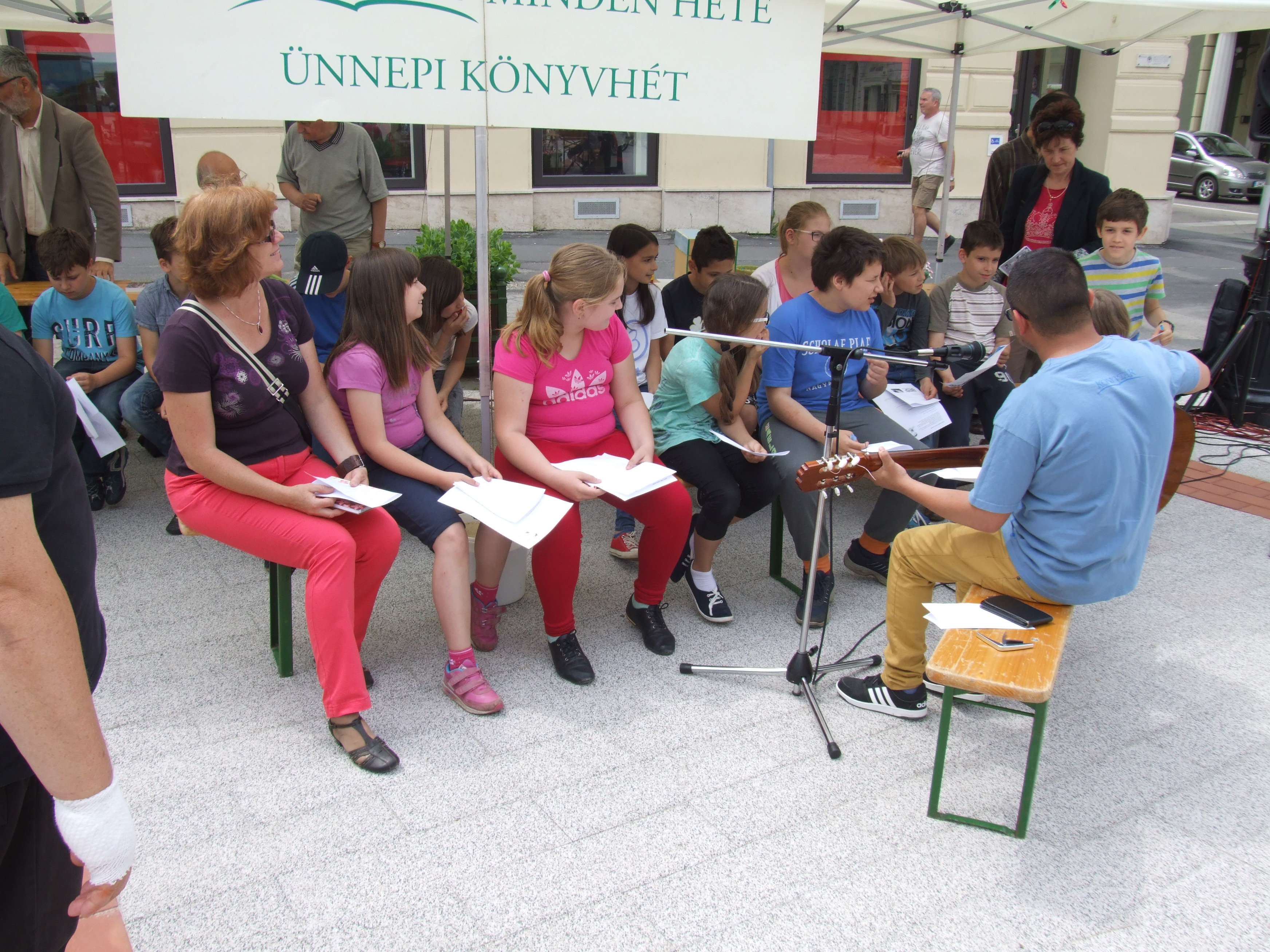 2016.06.09. Ünnepi könyvhét sátor Fenyvesi Attila dalt tanít diákoknak DSCF5716.JPG