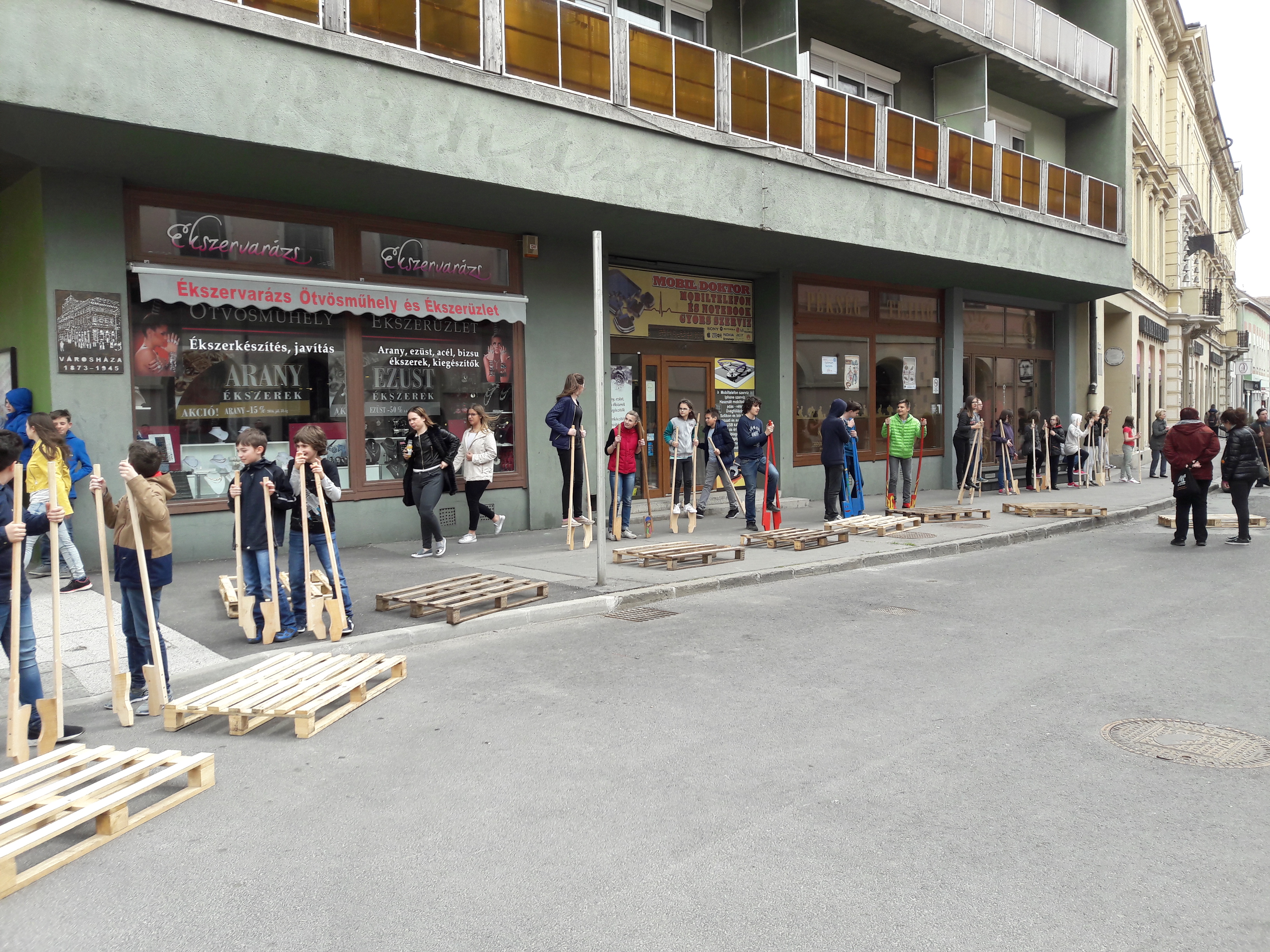 2017.04.27. Tömeges gólyalábra állás a Fő út - Ady u. kereszteződésében
