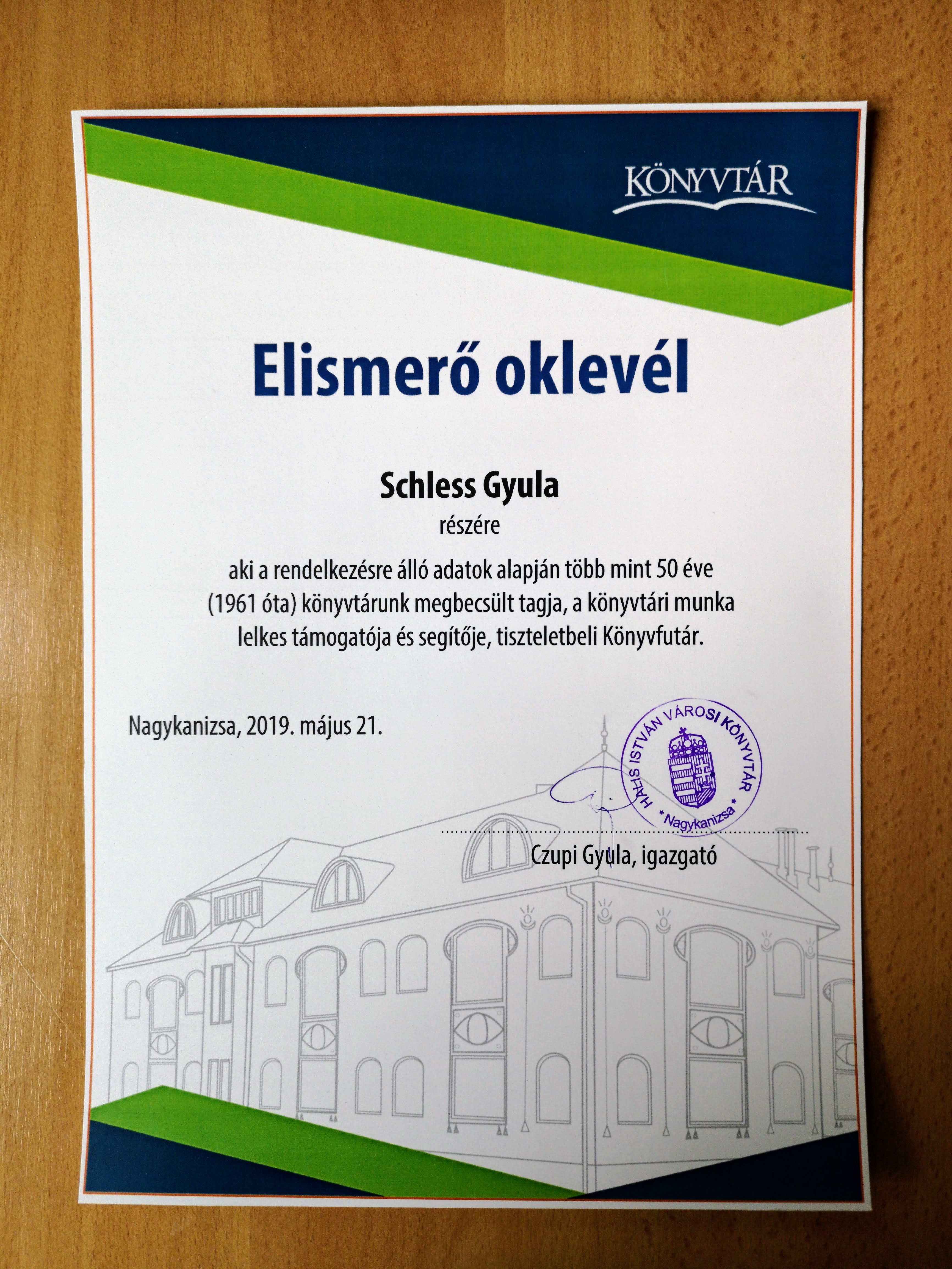 2019.05.22. Schless Gyula oklevél átadás