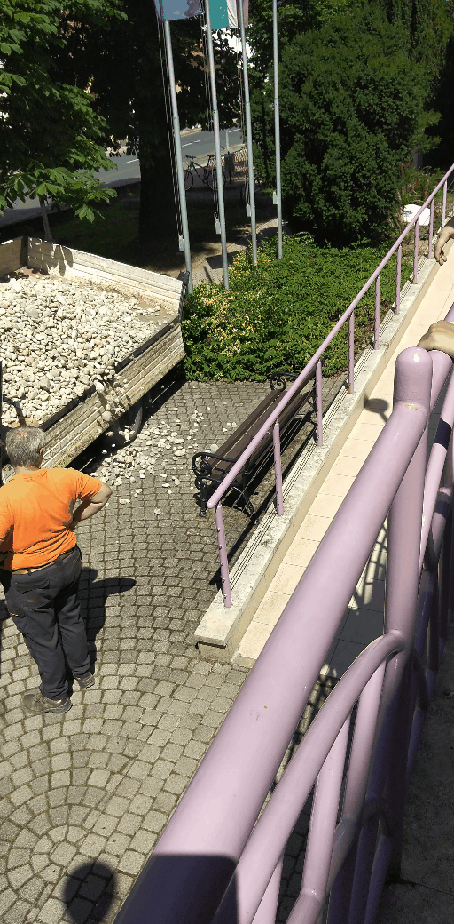 2023.06.26. Könyvtár rámpa freskó felszerelése, kavicsok meghozatala
