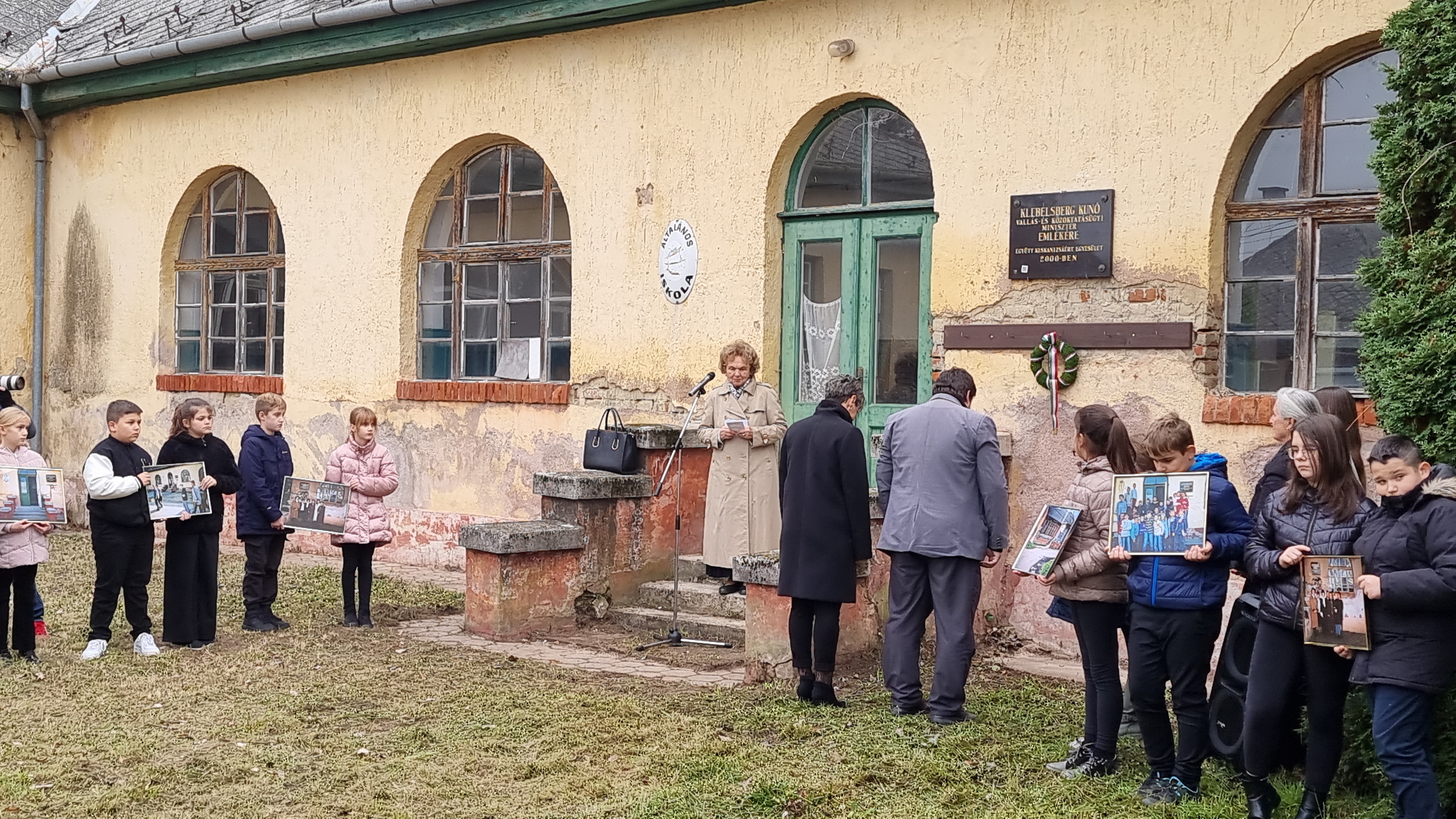 2025.11.11. Klebelsberg Kunó emléktábla koszorúzás és QR-kód felragasztás